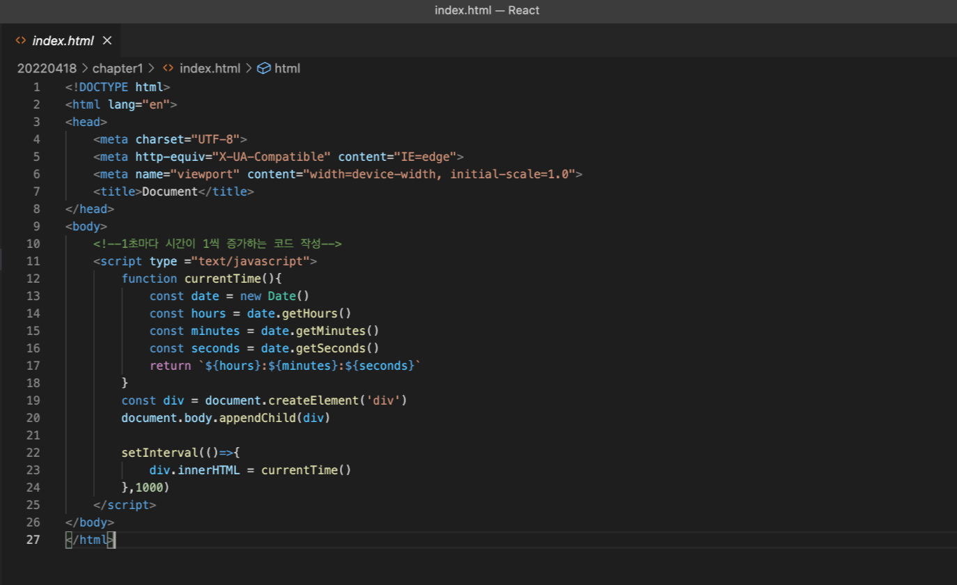 미션: 1초마다 시간이 1초씩 증가하는 코드를 작성해보자.