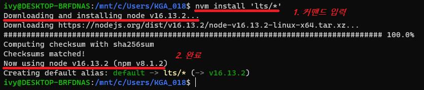 버전정보가 정상적으로 출력된다면 nvm 설치가 완료된 것이다.